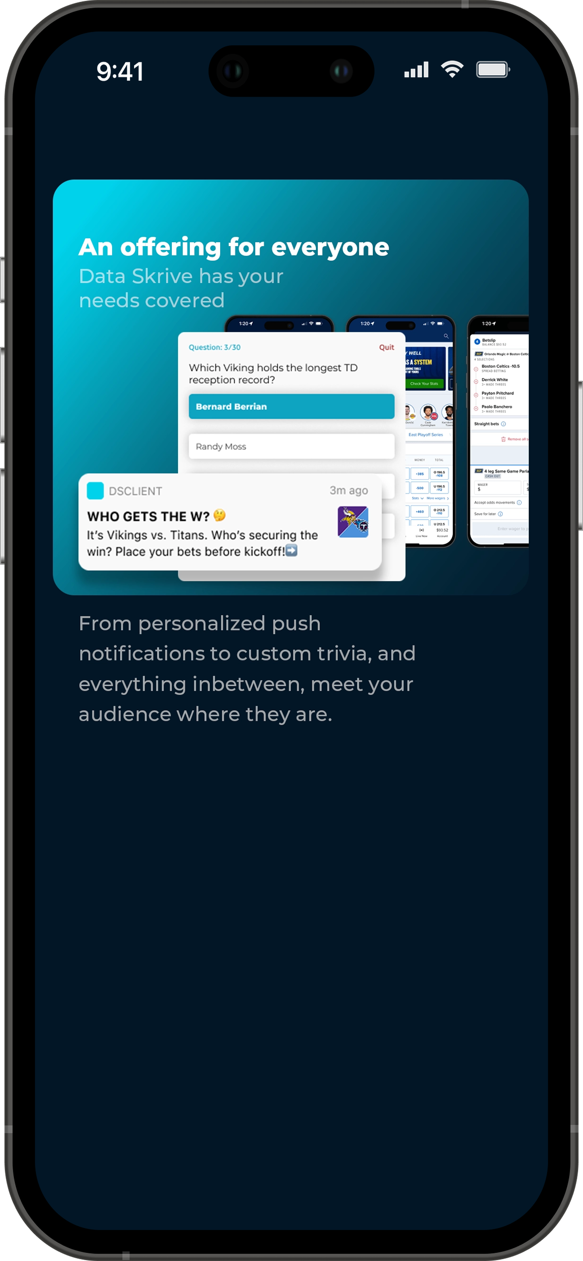 Turn live plays into real-time, personalized bets that inspire action, loyalty, and handle growth while cutting through noise with true relevance.