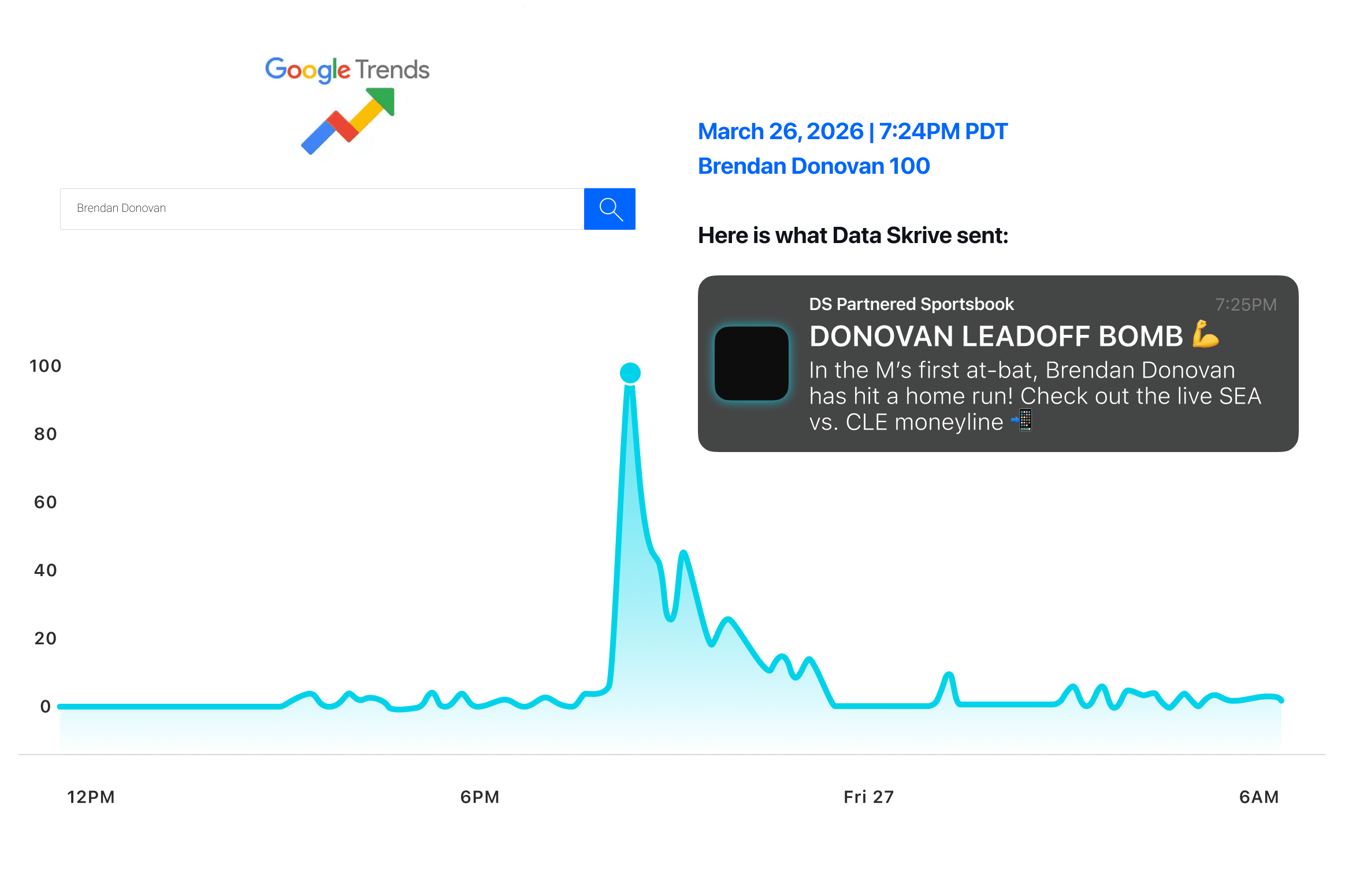 Engagement spikes happen fast, usually right when something meaningful is about to happen, or just happened. You can see it in search behavior, social activity, and app usage. By the time most notifications go out, the moment has already started to fade. Odds have shifted. The emotional peak has passed. Attention has moved on.